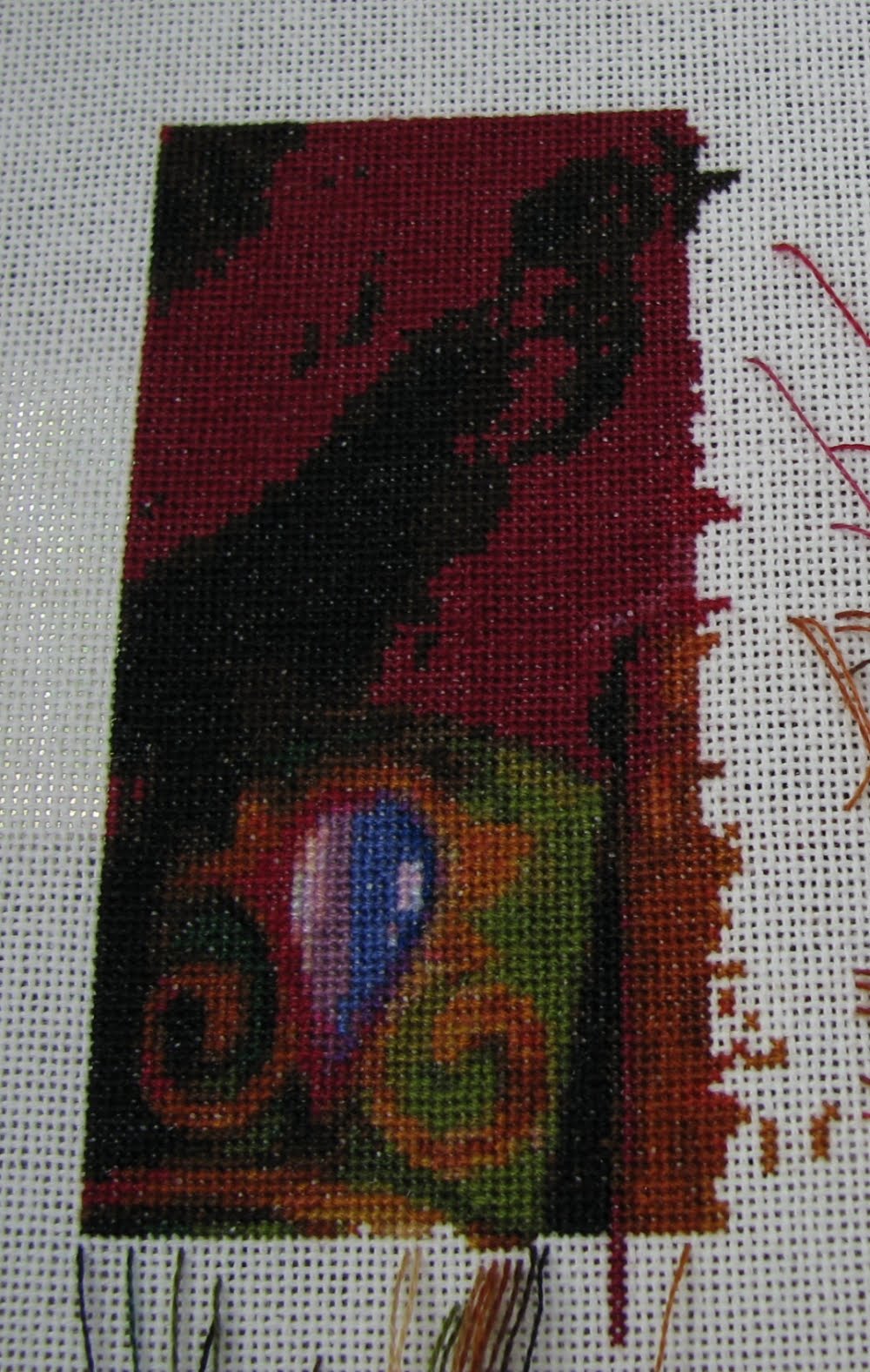 And now for the cross stitch updates. First is Calling the Crows. I absolutely love this image and wish the design wasn't so huge! All I have to show at this point is three wing tips. I really like how the background is looking so far though, the colors are blended together so nicely.